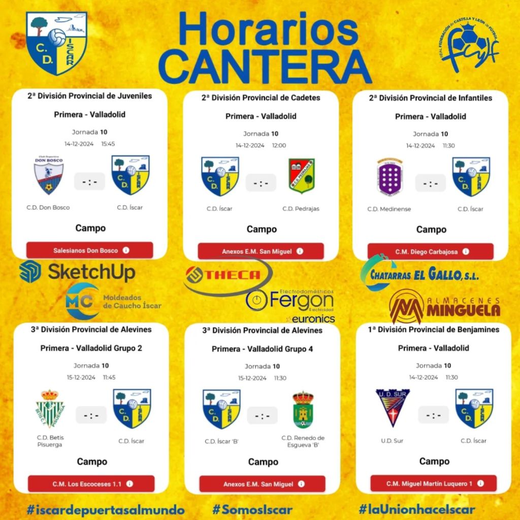 Estos son los horarios de los partidos que jugarán nuestros equipos de la Cantera este fin de semana, 14 y 15 de diciembre.