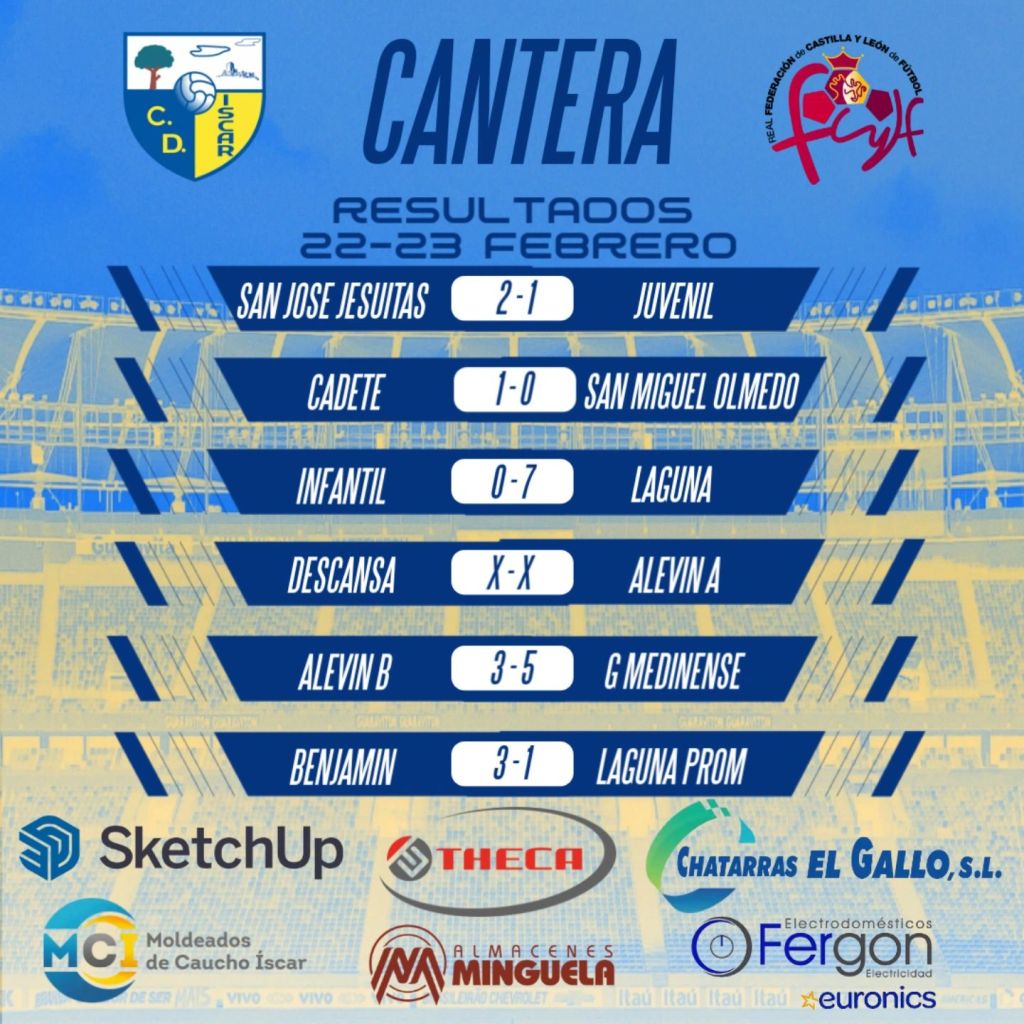 Resultados Cantera Publicado porcdiscar26 Feb 2025Publicado en CanteraEtiquetas:resultados Resultados de los partidos jugados el pasado fin de semana 22 y 23 de febrero. Compartir esto: Compartir en Facebook (Se abre en una ventana nueva) Facebook Compartir en WhatsApp (Se abre en una ventana nueva) WhatsApp Compartir en X (Se abre en una ventana nueva) X Más Imprimir (Se abre en una ventana nueva) Imprimir Email a link to a friend (Se abre en una ventana nueva) Correo electrónico Me gusta Cargando... Relacionado