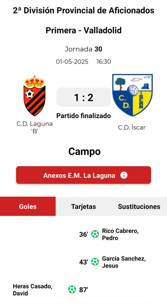 Victoria del C.D. Iscar en partido adelantado de la última jornada, 30ª, en Laguna de Duero ante el C.D. LagunaB.