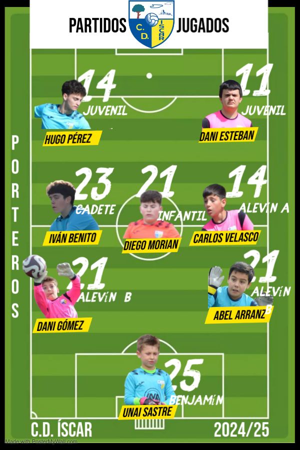 Porteros 24/25 Publicado porcdiscar23 May 2025Publicado en Cantera, Club, Primer equipoEtiquetas:Porteros Estos han sido nuestros porteros esta temporada y esta su participación Compartir esto: Compartir en Facebook (Se abre en una ventana nueva) Facebook Compartir en WhatsApp (Se abre en una ventana nueva) WhatsApp Compartir en X (Se abre en una ventana nueva) X Más Imprimir (Se abre en una ventana nueva) Imprimir Email a link to a friend (Se abre en una ventana nueva) Correo electrónico Me gusta Cargando... Relacionado
