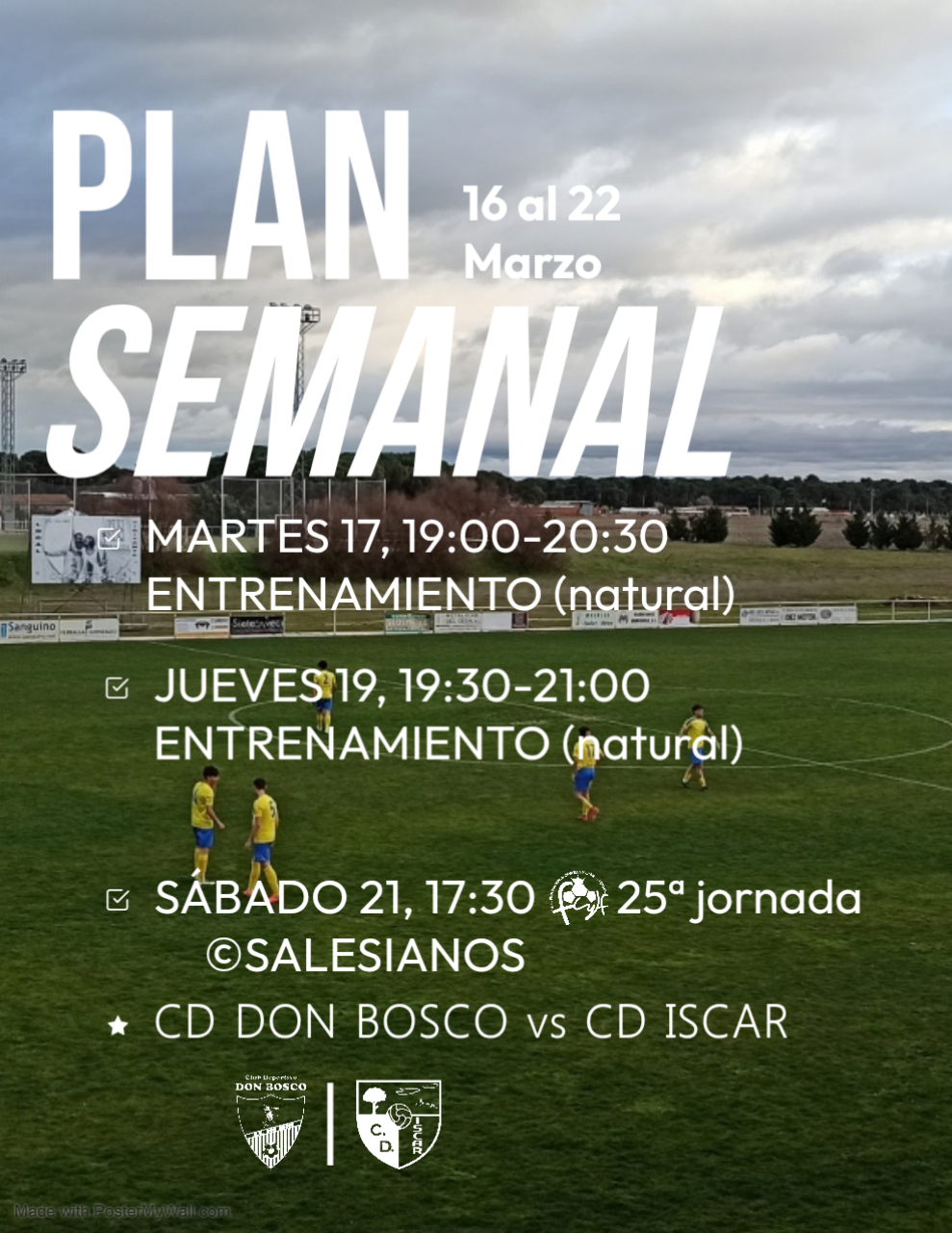 El Club Deportivo Íscar ya tiene definido su plan de trabajo para preparar el próximo compromiso liguero como visitante frente al Don Bosco en Valladolid.
