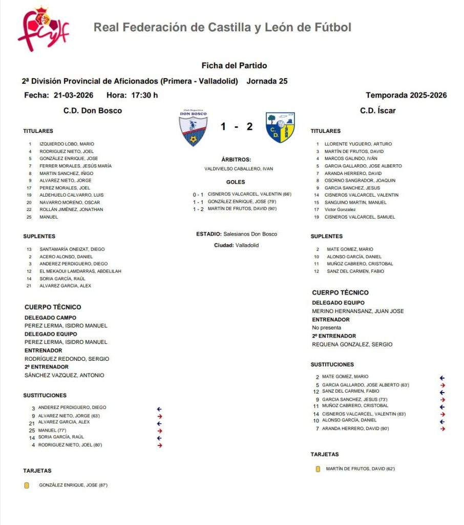 En definitiva, triunfo trabajado y merecido de un Íscar que mostró solidez, eficacia en los momentos clave y una gran capacidad de reacción para llevarse los tres puntos de un campo complicado.