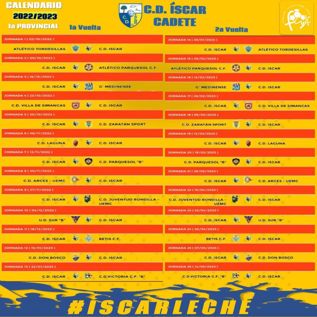Calendario Cadete 2022/23 Compartir esto: Compartir en Facebook (Se abre en una ventana nueva) Facebook Compartir en WhatsApp (Se abre en una ventana nueva) WhatsApp Compartir en X (Se abre en una ventana nueva) X Más Imprimir (Se abre en una ventana nueva) Imprimir Email a link to a friend (Se abre en una ventana nueva) Correo electrónico Me gusta Cargando...