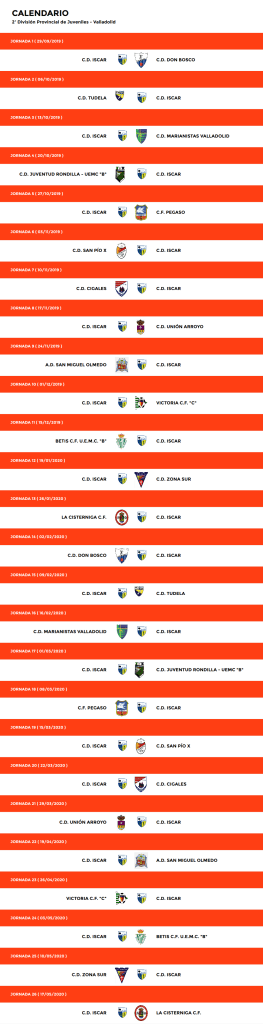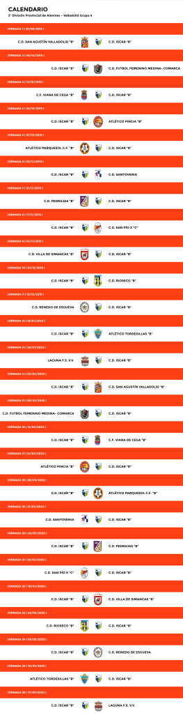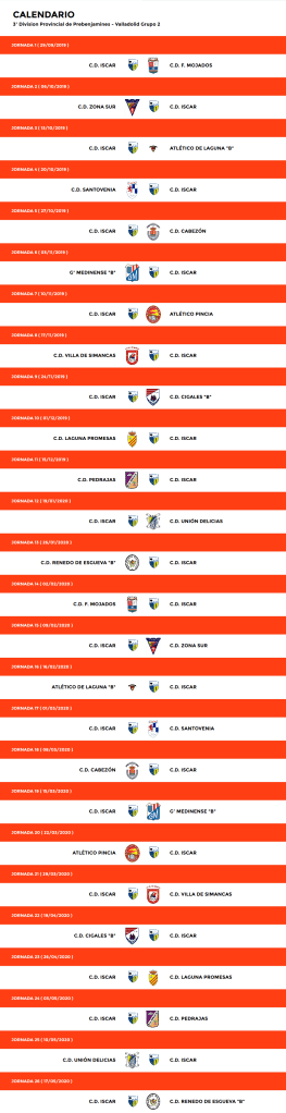Calendarios 2019/2020 JUVENILCADETEINFANTILALEVIN AALEVIN BBENJAMIN ABENJAMIN BPREBENJAMIN Compartir esto: Compartir en Facebook (Se abre en una ventana nueva) Facebook Compartir en WhatsApp (Se abre en una ventana nueva) WhatsApp Compartir en X (Se abre en una ventana nueva) X Más Imprimir (Se abre en una ventana nueva) Imprimir Email a link to a friend (Se abre en una ventana nueva) Correo electrónico Me gusta Cargando...