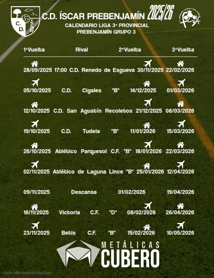 | 29/11 | Renedo | 1 – 1 | PREBENJAMÍN |