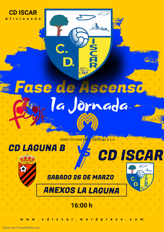 Tras la gran victoria en Laguna el Íscar juega este sábado en San Miguel contra el Mojados su segundo partido de la Fase de Ascenso a Segunda Provincial. Estos son los partidos de la segunda jornada El equipo necesita todo el apoyo posible y por eso hacemos un llamamiento a toda la afición para queSigueSigue leyendo «CD ÍSCAR – CD Mojados B, sábado 2 a las 17:00h»