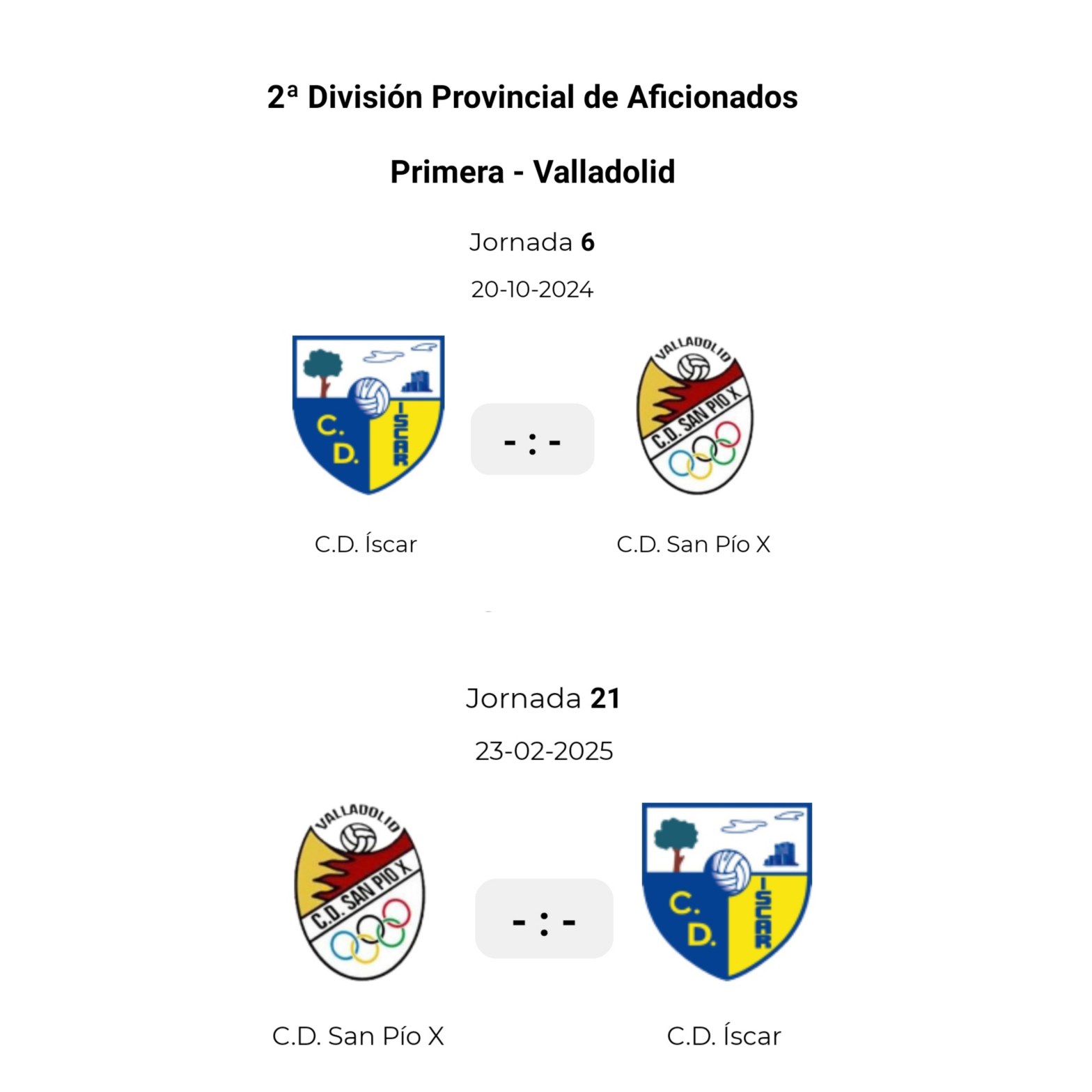 El C. D. Íscar quiere sumar sus 3 primeros puntos de la temporada El Íscar juega en San Miguel su primer partido en casa contra el C.D. Viana de Cega la segunda jornada de Liga de 2ª Provincial. Un partido que se disputará el sábado 21 de septiembre a las 16:30 horas.