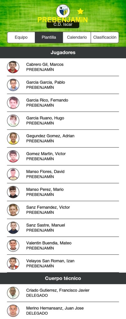 Primer Equipo (Foto) | Filial | Juvenil | Cadete | Infantil | Alevin | Benjamin | Prebenjamin A | Prebenjamin B