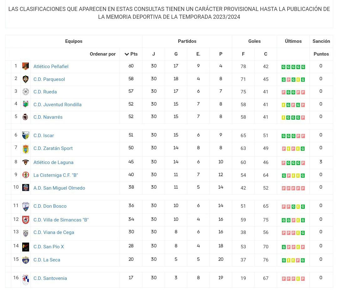 | 74/75 | 1ª Provincial | 12º | Mariano Sanguino | Julio Samaniego |