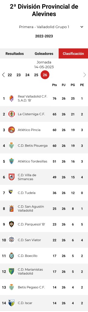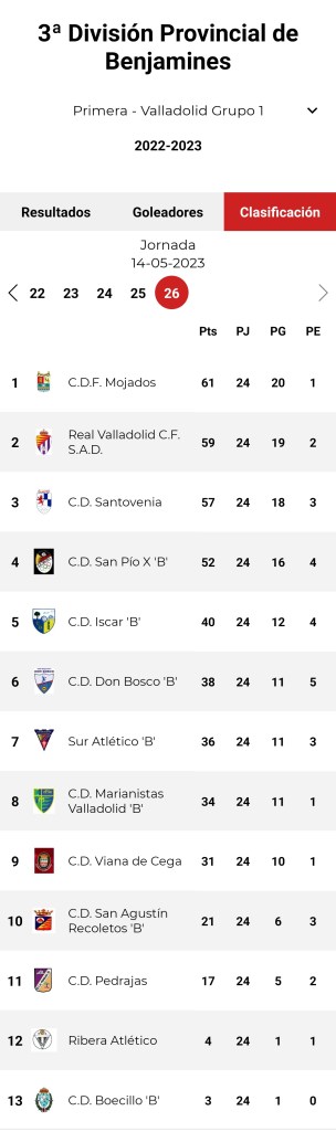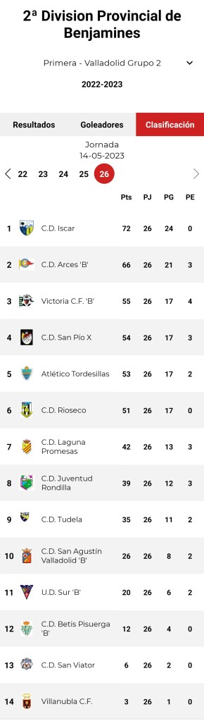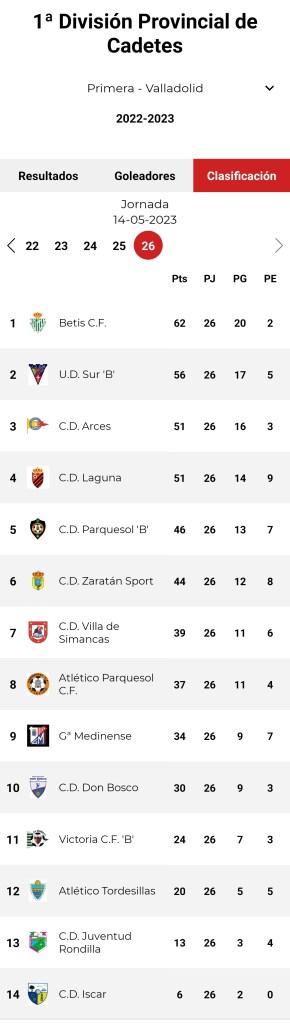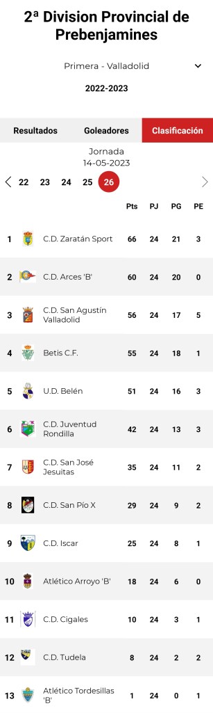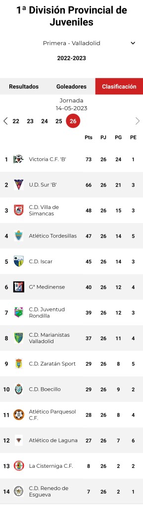 Liga 2022/23 Calendarios de Liga Aficionado 3ª Provincial Juvenil 1ª Provincial Cadete 1ª Provincial Infantil 1ª Provincial Alevín 2ª Provincial Benjamín A 2ª Provincial Benjamín B 3ª Provincial Prebenjamín 2ª Provincial Resultados y Clasificaciones Aficionado Cantera Compartir esto: Compartir en Facebook (Se abre en una ventana nueva) Facebook Compartir en WhatsApp (Se abre en una ventana nueva) WhatsApp Compartir en X (Se abre en una ventana nueva) X Más Imprimir (Se abre en una ventana nueva) Imprimir Email a link to a friend (Se abre en una ventana nueva) Correo electrónico Me gusta Cargando...