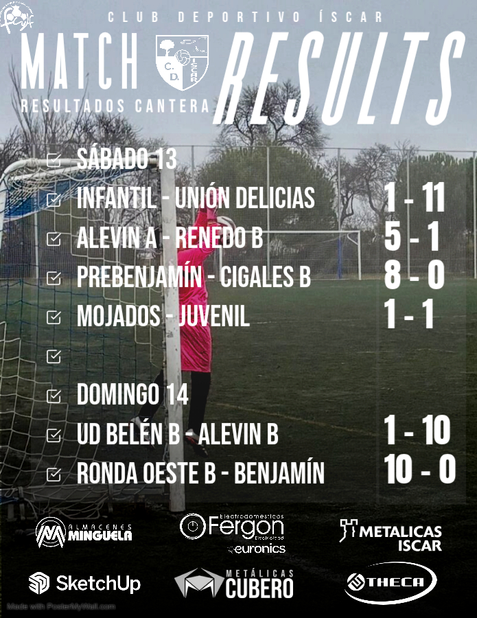 La cantera del Club Deportivo Íscar volvió a dejar grandes sensaciones este fin de semana con importantes victorias y partidos muy disputados en todas las categorías. 📅 Sábado 13 Infantil 🆚 Unión Delicias → 1 – 11 Alevín A 🆚 Renedo B → 5 – 1 Prebenjamín 🆚 Cigales B → 8 – 0 MojadosSigue leyendo "Resultados Cantera | Fin de semana 13 y 14 de diciembre"