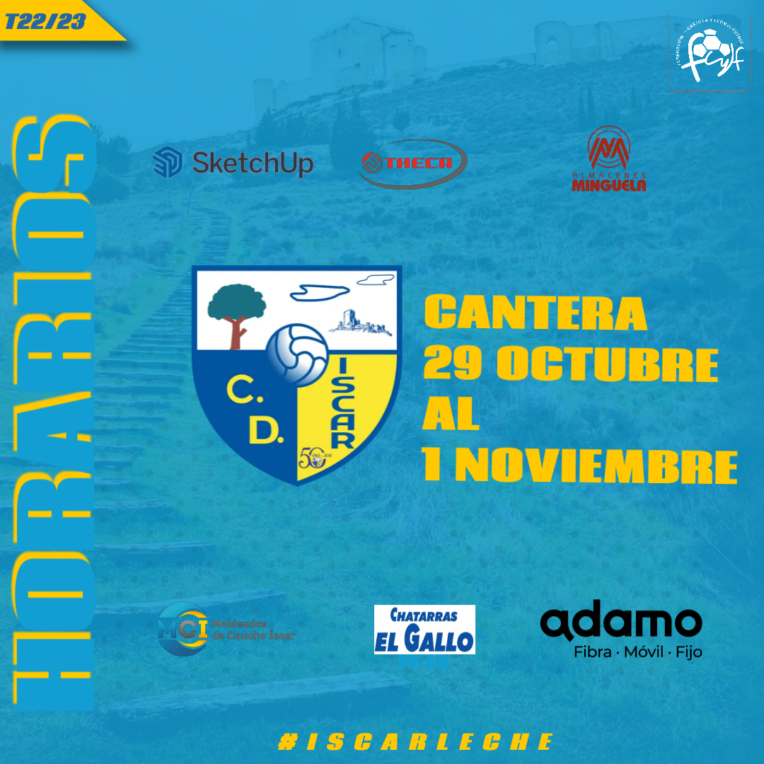 Horarios de los partidos de nuestros equipos de Cantera para este próximo fin de semana del 29 y 30 de octubre correspondientes a la 5ª jornada de Liga más el aplazado de la 1ª jornada del Benjamín A contra el Villanubla que se jugará el martes 1 de noviembre.