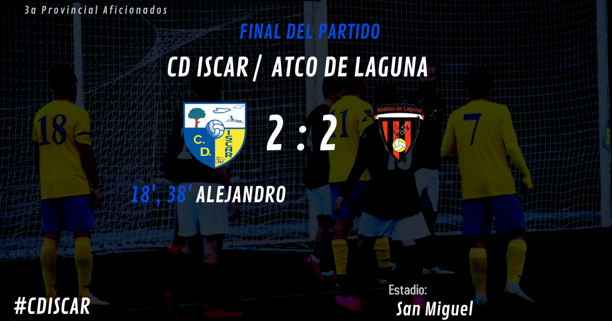 CD Iscar 2-2 CD Atco de Laguna. Los 2 goles de Alejandro no bastaron para conseguir los 3 puntos y los puestos de playoffs se aprietan. Empate en San Miguel ante el Atlético de Laguna que sabe a poco tras irse al descanso con 2-0 para el Íscar con doblete de Alejandro. Se guardó unSigueSigue leyendo «2-2: Decepcionante empate ante el Atlético Laguna»