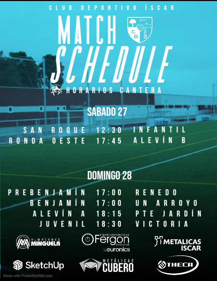 Partidos que juegan nuestros canteranos este fin de semana sábado 19 y domingo 20, ya que el Aficionado descansa preparando la fase de ascenso. Estos son los horarios: