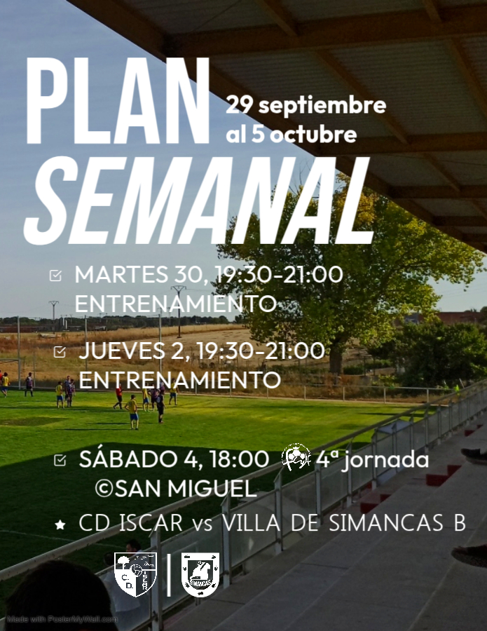 Plan Semanal CD Íscar | 29 de septiembre al 5 de octubre