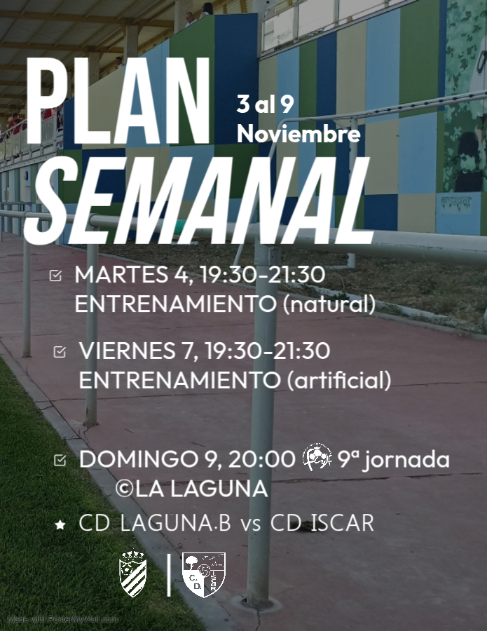 El CD Íscar ya tiene definido su plan de trabajo para esta semana, con sesiones de entrenamiento y una nueva jornada de liga el fin de semana. 📅 Calendario de la semana: Martes 4, 19:30–21:30 → ️♂️ Entrenamiento (campo natural) Viernes 7, 19:30–21:30 → ⚽ Entrenamiento (campo artificial) Domingo 9, 20:00 → 9ª jornadaSigueSigue leyendo «Plan Semanal | 3 al 9 de noviembre»