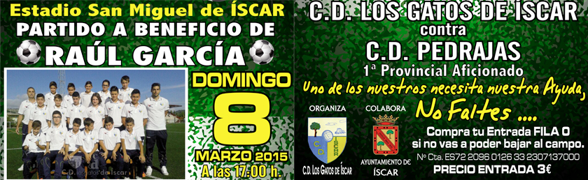 Tanto el C.D. Los Gatos de Íscar, como la familia García Sanz, quiere DAR LAS GRACIAS a todo el mundo que ha colaborado de cualquier forma en el partido disputado a beneficio de Raúl. Lo que ayer se vivió en el Estadio San Miguel de Íscar va a ser algo que siempre quedará en nuestroSigueSigue leyendo «NOTA DE AGRADECIMIENTO»